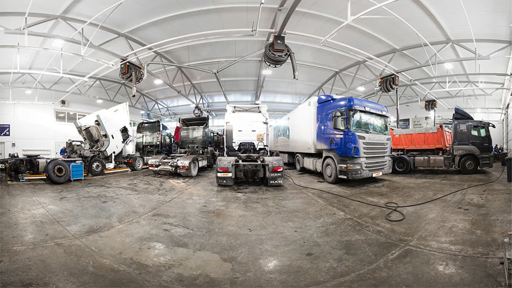 Располагаем производственными площадями в 4000 квадратных метров, где есть всё необходимое для качественного грузового сервиса — подъёмники и сканеры, испытательные и компьютерные стенды, топливный и токарный цех и т. д. У нас вы можете сделать ремонт всех узлов и агрегатов тягача, а также отремонтировать прицепы, полуприцепы и рефрижераторы.